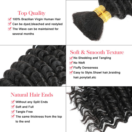 Human Braiding Hair 100g Deep Wave for Braiding No Weft Human Hair Extensions for Boho Braids