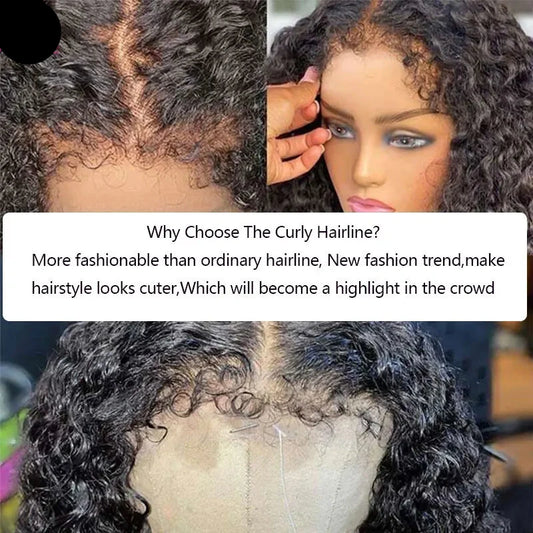 "Princess Love" Kinky Curly Edged Short Bob Human Hair Transparent Lace Front Wig