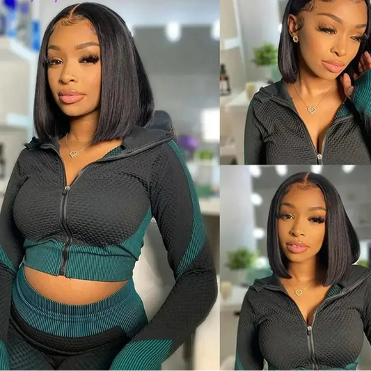"Brittany Renae" HD Transparent Short Bob Preplucked Human Hair Lace Front Wig
